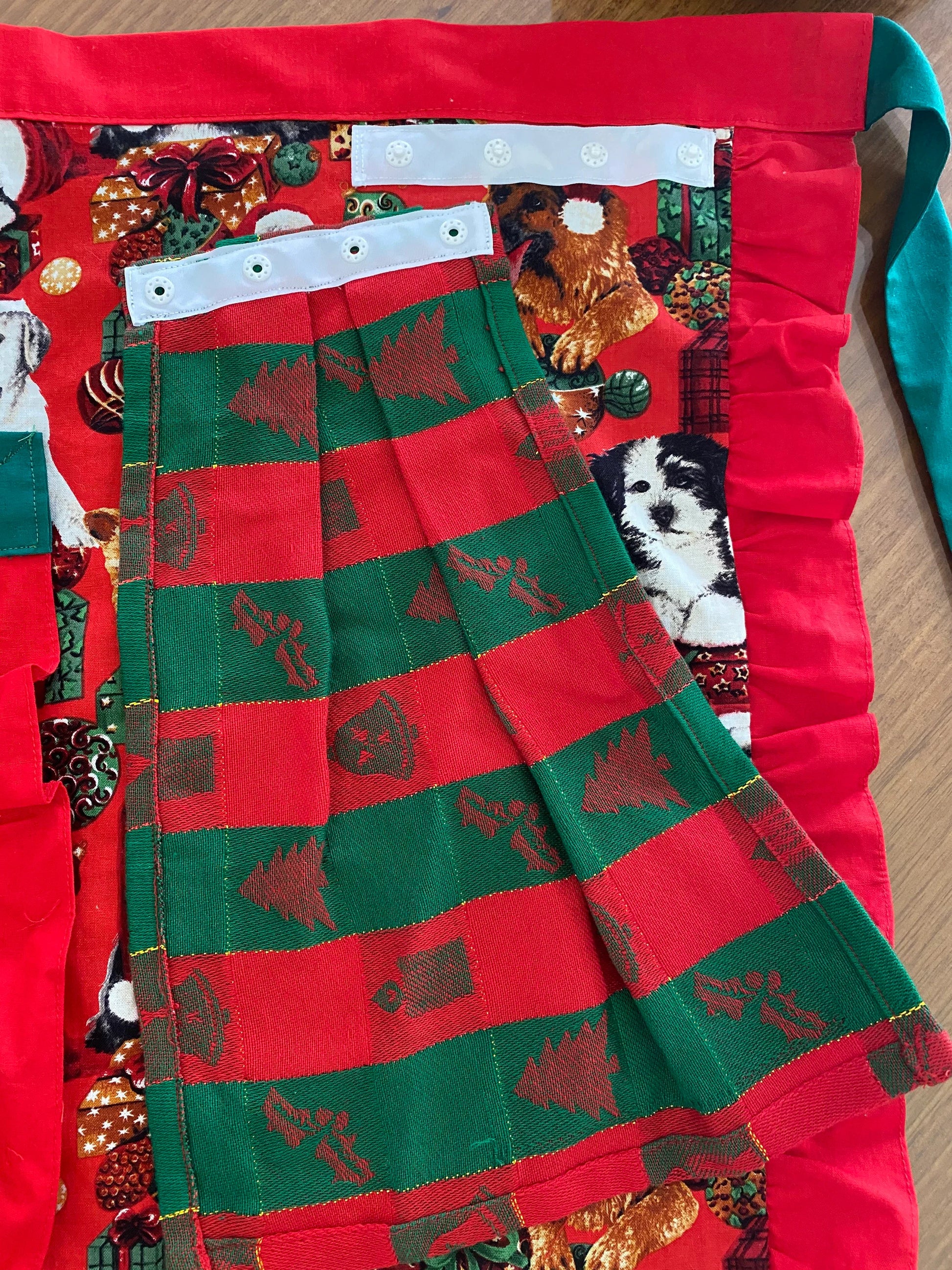 Christmas Waist Apron with Hand Towel and Pocket- Doggy print