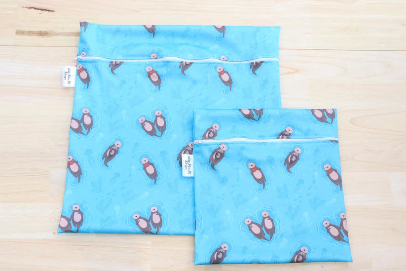 Wet Bags Keep your wet clothes, swimming togs or nappies in our wet handmade wet bags. They are made from waterproof fabric and will keep your wet items contained.