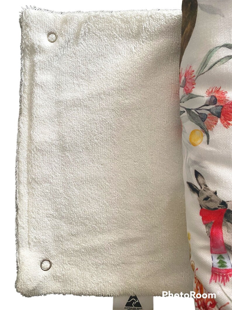 You can use just water or any other product when washing. They each have 4 snaps or press-studs which clip together and allow you to roll up on a paper towel holder (not included with this item. Check my other listings). One side is 100% cotton with a backing of Bamboo.